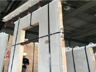 S posebno transportno prikolico prepeljemo zidove na lokacijo ter jih postavimo na pozicijo skladno z načrtom. Da dobimo maksimalno trdnost hiše, zidove objamemo z betonskimi stebri in horizontalnimi vezmi. Ker je hiša pod streho v manj kot 3 tednih, lahko hitro zaključimo predpripravljena inštalaterska dela, tlake, omete ter pripravimo strojnico. Ko je estrih suh se finalno obdelajo stene ter položijo talne obloge ter vgradi sanitarna oprema ter vrata.
