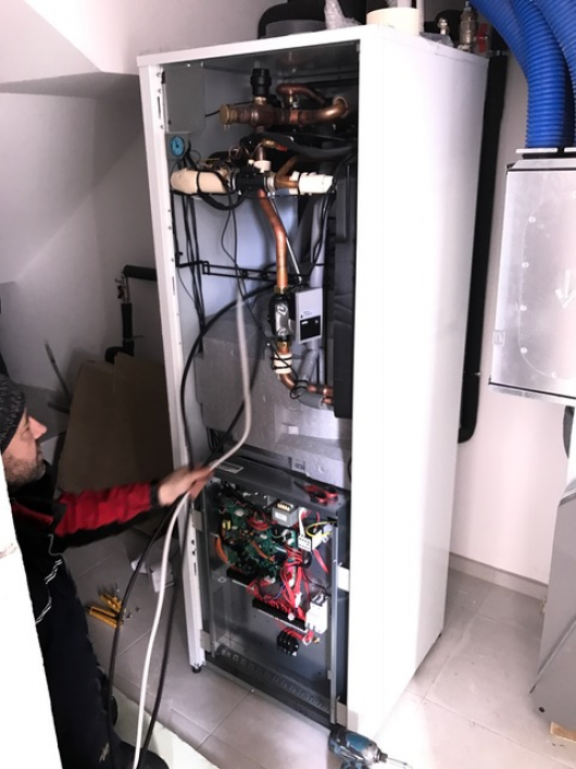 8.6 Ogrevanje-toplotna črpalka. Dobava in montaža nizkotemperaturne toplotne črpalke DAIKIN ALTHERMA EHVX04S18C3V (zrak/voda, COP oz. grelno število je 4,02), ki zagotavlja primeren vir toplotne energije za ogrevanje s pomočjo talnega gretja. V ponudbi kompletna izvedba razvoda in priključitve talnega gretja na TČ. Izdelava betonskega podstavka zunanje enote toplotne črpalke je zajeta v ceni.